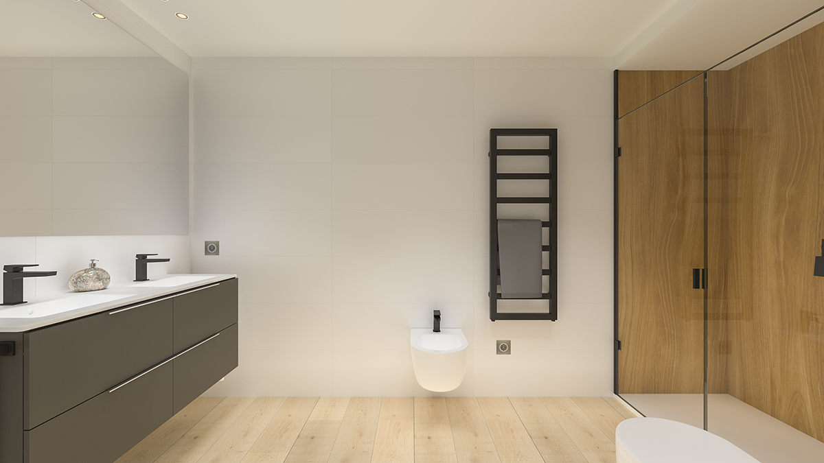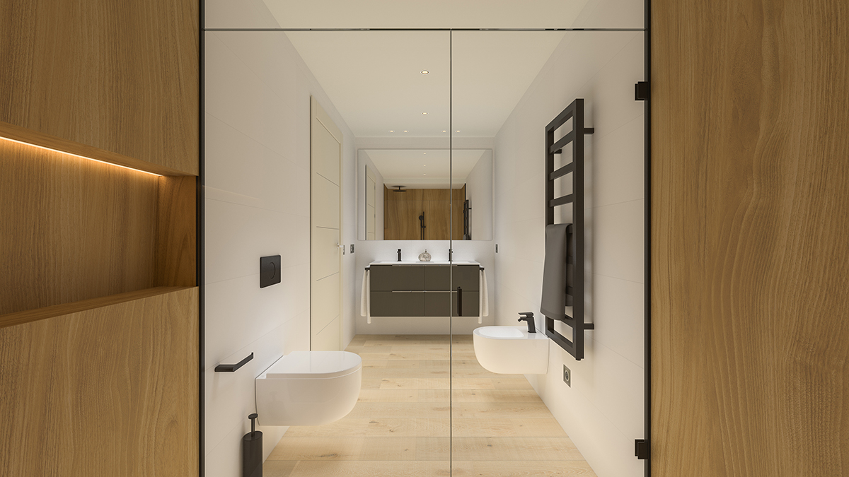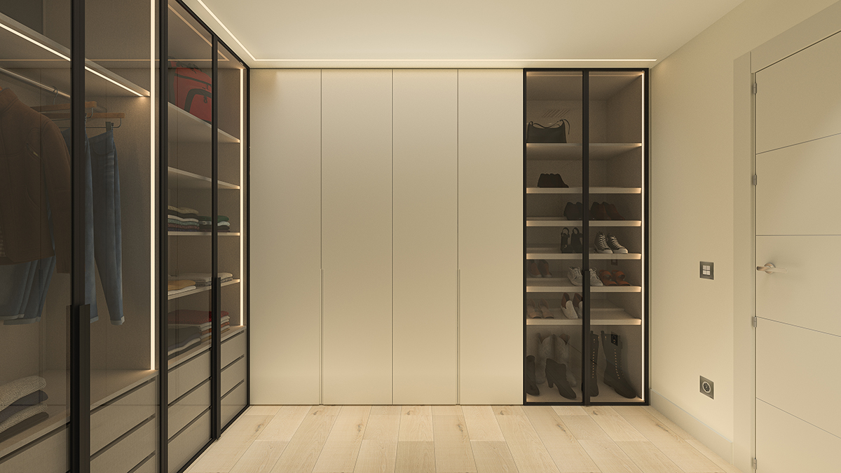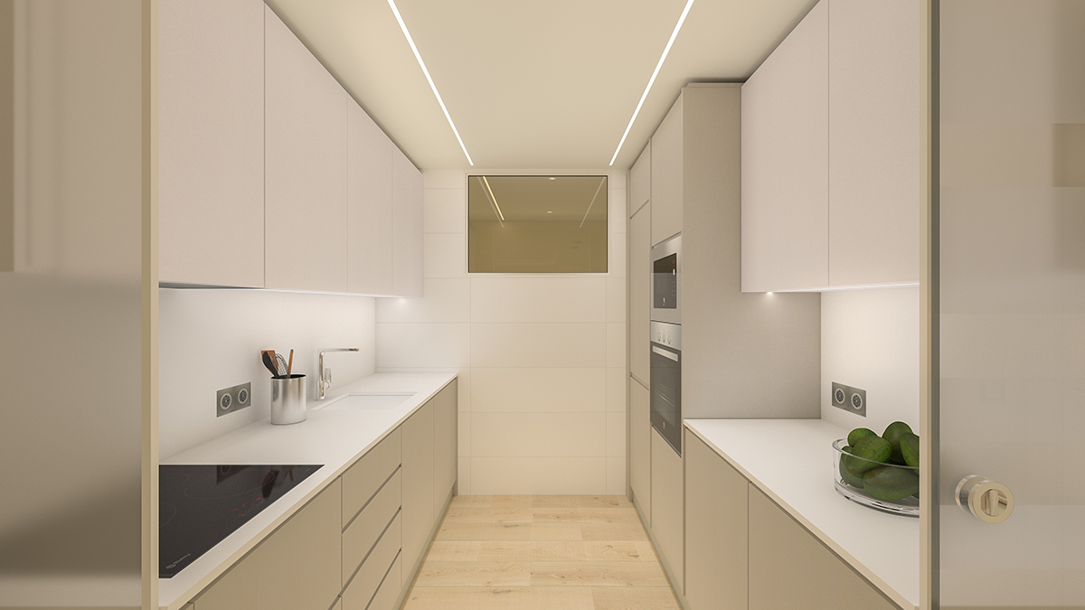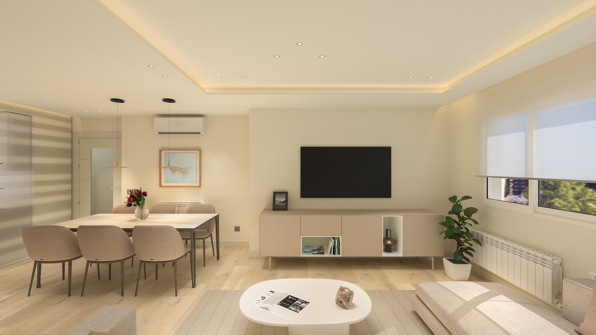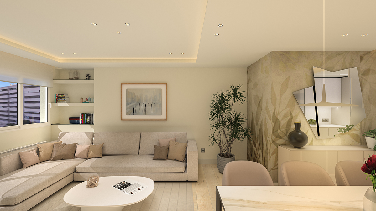 Se realiza la reforma integral de éste piso del año 1978. Se realiza una distribución nueva de estancias y se cambian todas las antiguas instalaciones. Los materiales empleados para la reforma son de Porcelanosa: porcelánicos de gran formato Xtone, tarima LinkFloor, etc.